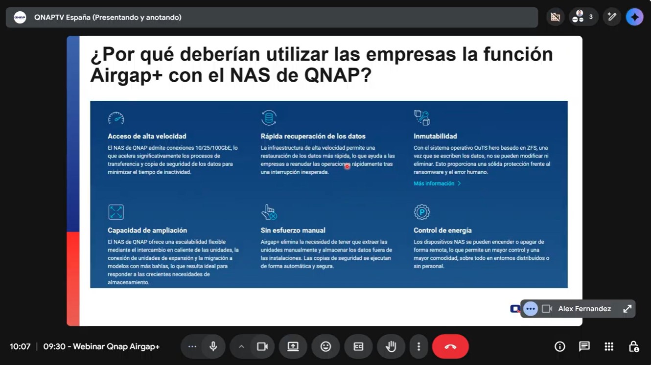 Hoy desde QNAP, junto a Qloudea, hemos impartido un webinar técnico centrado en cómo reforzar la seguridad de las copias de seguridad en entornos profesionales mediante aislamiento controlado con Airgap+.